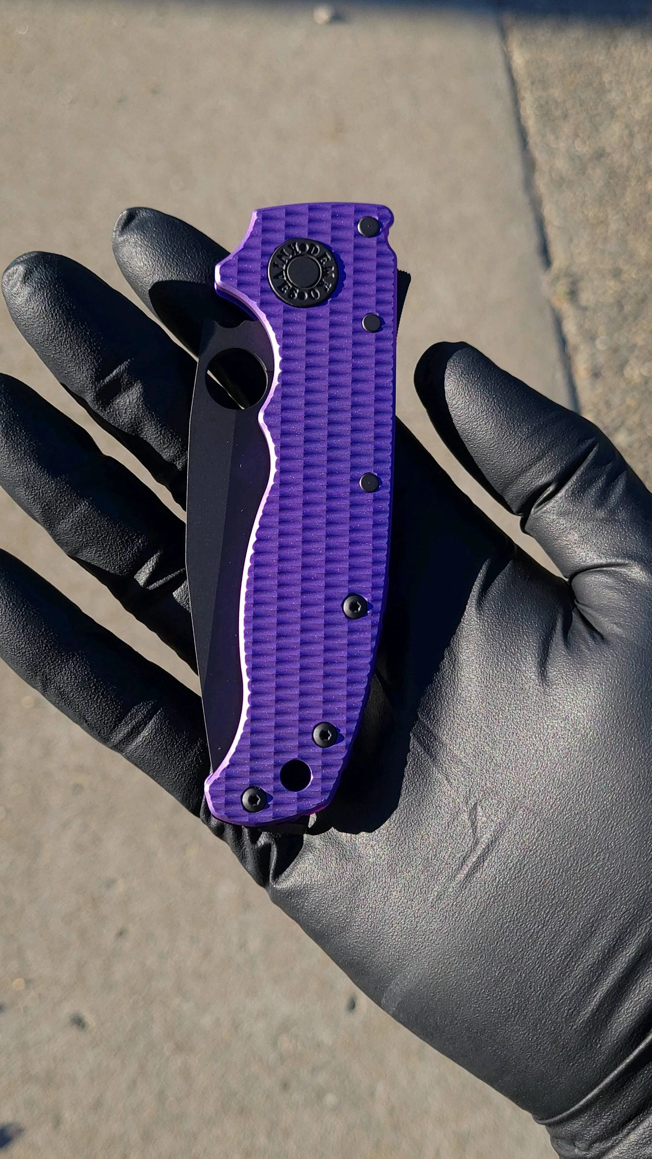 Ice Lite - Urban EDC Supply Collab Blackwashed, Rock Pattern texture, HV Purp anodized clip, blasted & tumbled blade